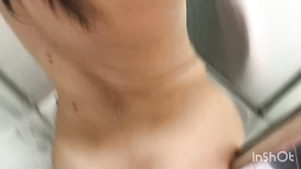 Hon blir ertappad med att onanera med en dildo i duschen och får en riktig.